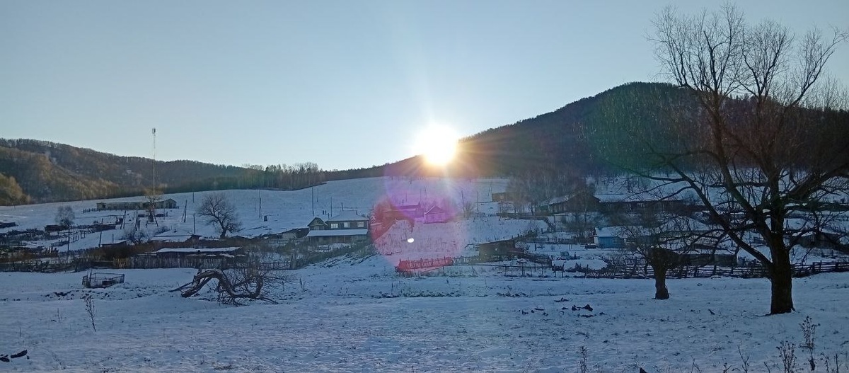 У нас Солнце только выходит из-за горы, озаряя и прогревая своими лучами наше Дëмино.
