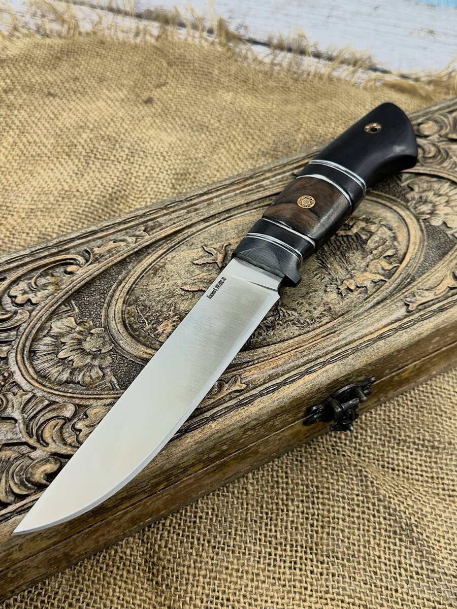 🔪 Рабочий нож “Засапожный” из S390 Microclean — надёжность без компромиссов! Ищете нож, который не подведёт в любой ситуации? Обратите внимание на “Засапожный” — идеальный выбор для охотников, туристов, рыбаков и всех, кто ценит надёжность и ручную работу. Преимущества ножа: - Кованая сталь S390 Microclean (HRC 68-70) — одна из самых твёрдых и износостойких сталей мира. - Бритвенная заточка и прямые спуски — легко режет, долго держит остроту. - Наборная рукоять из железного дерева, чёрного граба и карбона — не только красиво, но и удобно лежит в руке даже в перчатке. - Качественная финишная обработка: сатиновый клинок, радиусные соединения. - Ножны из натуральной кожи с тиснением в комплекте. Возможно изготовление формованных ножен из кожи растительного дубления (+8 000 руб.). Для кого подойдёт? Этот нож — надёжный спутник для серьёзных задач: разделка, работа по дереву, универсальное применение на охоте или рыбалке. Подчёркивает статус коллекционера и станет отличным подарком. Цена