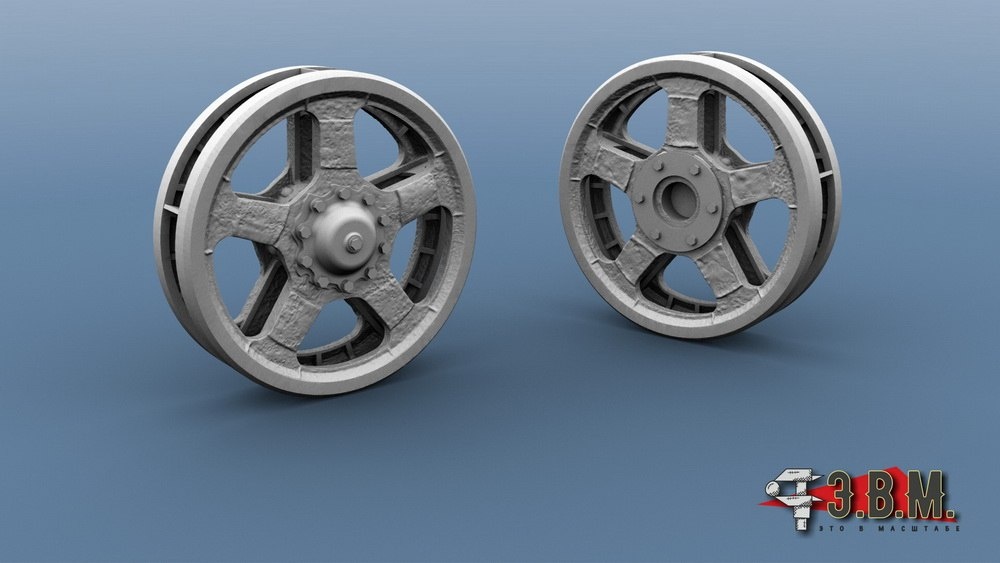 Э.В.М. представили ленивцы для моделей БМП-1/2 в 1/35 масштабе. В наборе будут представлены два типа ленивцев: - классические с ровной поверхностью, которые применялись преимущественно на БМП-1; - с рельефной ("вафельной") поверхностью, какие чаще встречаются на более поздних модификациях, в том числе на БМП-2 и других современных гусеничных машинах.
