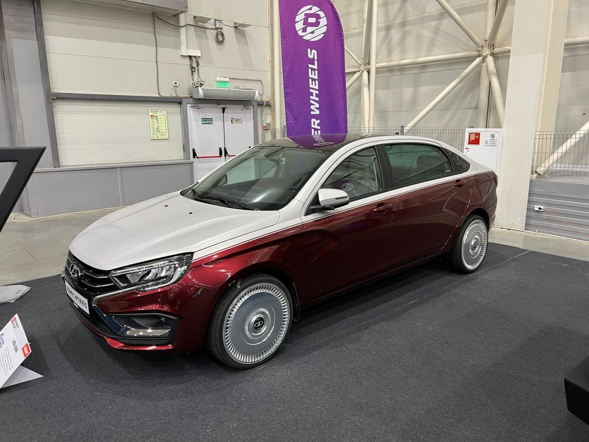 Перед публикой предстал настоящий «импортозамещённый Майбах» - Lada Aura в роскошном двухцветном окрасе. Особого внимания заслуживают диски 20-го диаметра. Такое на Ладу еще не устанавливали. Стиль «блинов» действительно, как на Майбахе. Напомню, что Лада Аура - удлиненный седан повышенной комфортности, построенный на базе обычной новой Весты. Сзади увеличено место для задних пассажиров, в остальном максимальная комплектация без изменений. Под капотом 1.8 литра на 122 силы. Каково интересно передвигаться на таких дисках?)
