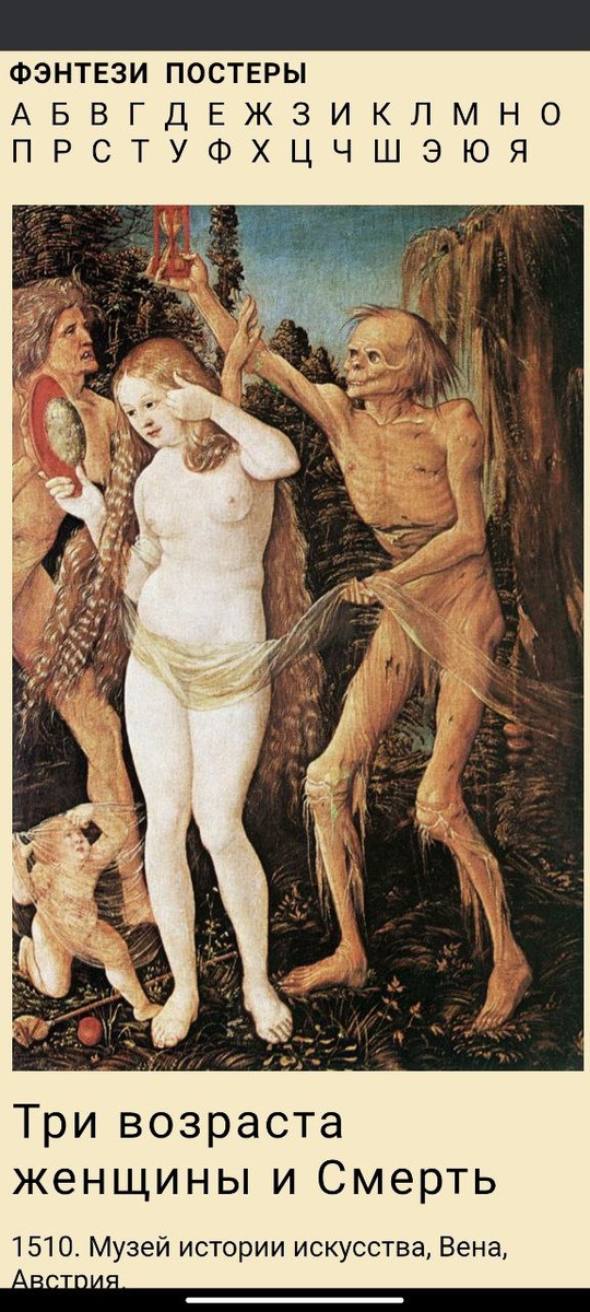Также на полотне Смерти удавалось встретиться с женщиной в сюжете "три возраста и Смерть