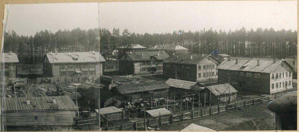 Панорама, сделанная с крыши дома по адресу ул. Краснофлотцев, 10; направление — перекрёсток улиц Бабушкина и Корепина. 1943–1946 гг.