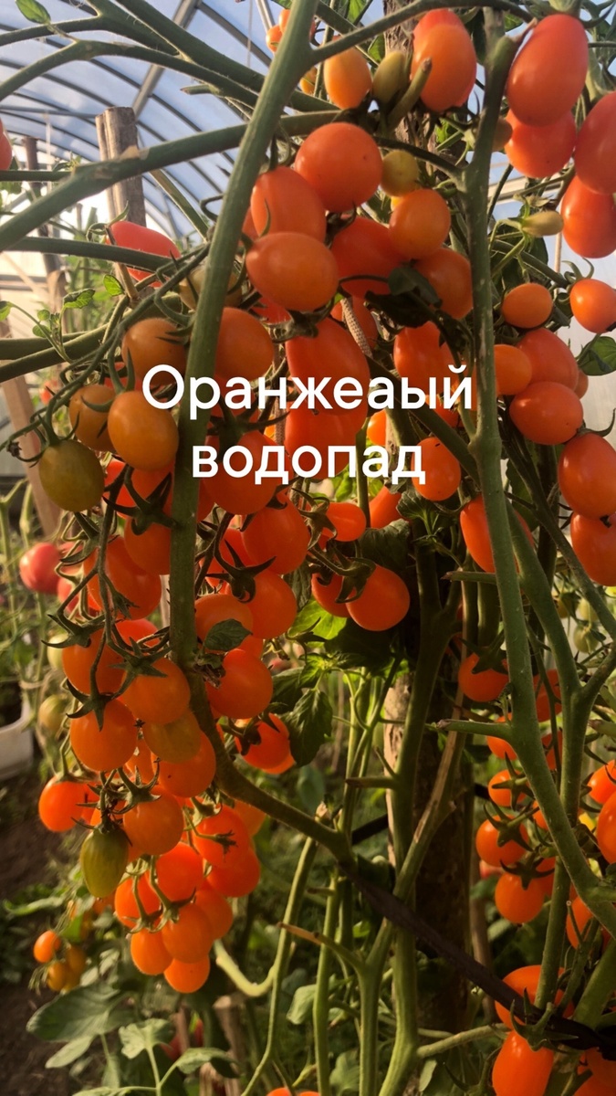 Томат Оранжевый Водопад (Фонтан ).Индетерминантный ,раннеспелый сорт Формирует длинные кисти с 14-28 плодами. Плод удлиненно-цилиндрической формы, плотный, ярко-оранжевый, блестящий, массой 15-20 г, с высоким содержанием сухих веществ