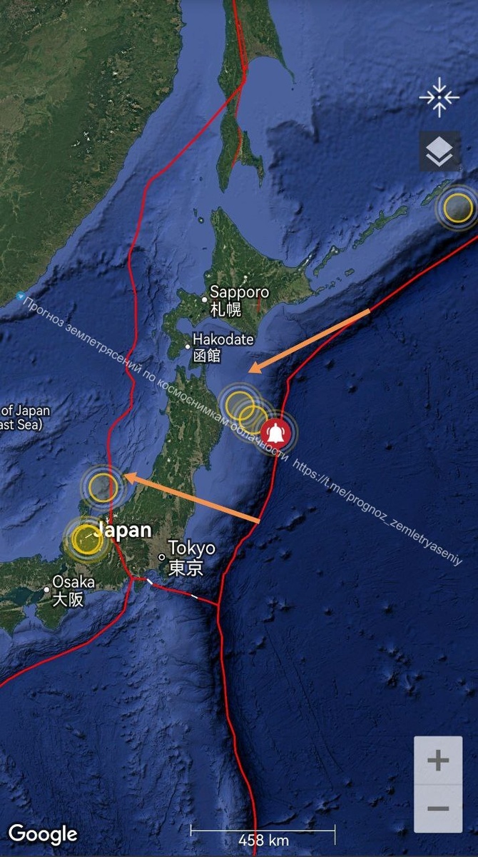 В ответ на пост Япония остается в фаворитах на крупное землетрясение (М7 и выше) на ближайшие дни. В очередной раз трассируется угол Тихоокеанской плиты с поворотом по часовой стрелке. P.S. в этой связи предыдущие 2 поста (первый, второй) в тектоническом плане являются частью одной проблемы/картины для обрамления Охотской плиты. ===== Japan remains among the favorites for a major earthquake (M7 and higher) in the coming days. Once again, the angle of the Pacific Plate is traced with a clockwise rotation.