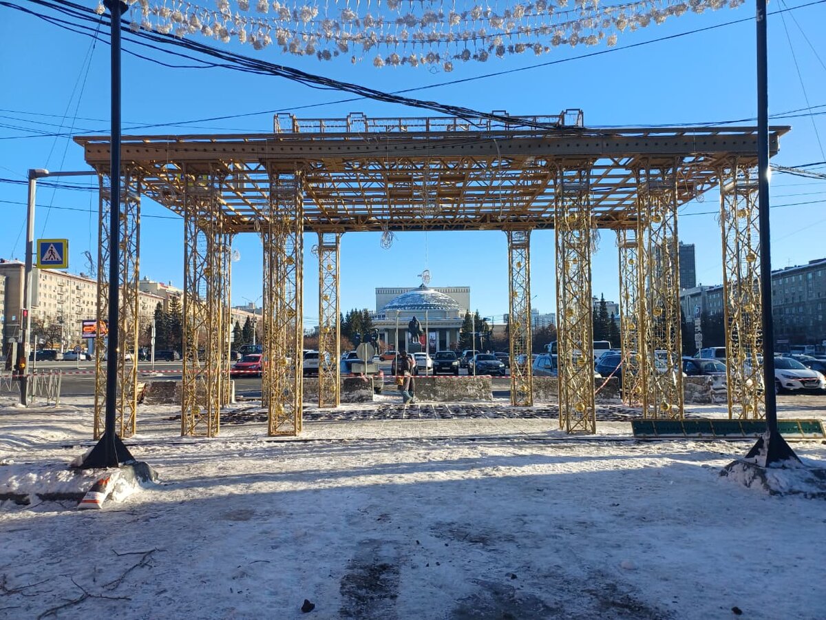Улицу Ленина в Новосибирске начали украшать к Новому году — фото