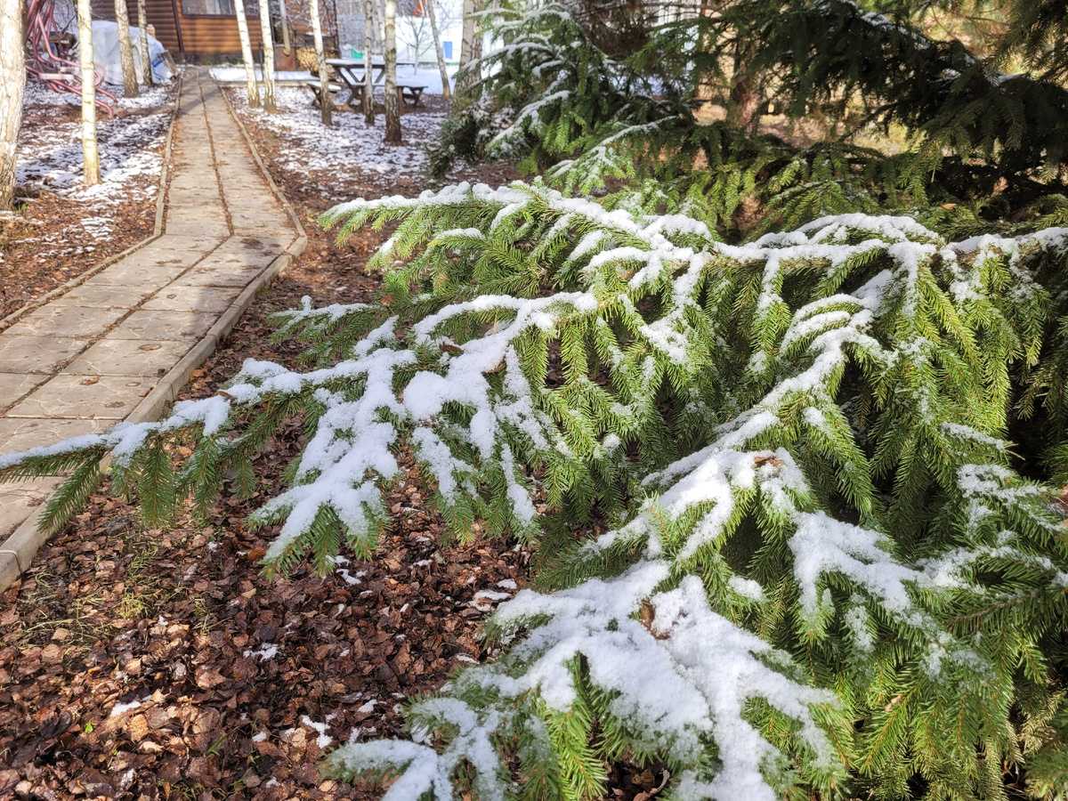 На улице -3, а я не весь урожай занесла в дом. Успел ли замёрзнуть? Морозы подразумевают другой фронт работы. Правда, во вторник будет +10, а потом опять морозы. Это, наверное, потепление, чтобы доделать то, что не успели. 😂 После баньки мы с мужем заспались аж до девяти часов. Расслабились, так сказать. На улице чудесная, яркая, солнечная погода. На душе стало веселее после затянувшихся пасмурных дней. При работе на улице руки замерзают, ухожу в дом погреться. Вырезаю малину, она у меня странная, растёт неправильно. Новых веток для летнего урожая нет, поэтому вырезаю полностью. А к осени начинают поспевать ягодки. Она у меня жёлтая и крупная. Под зиму ушла с большим количеством ягод. Но я успела сделать много баночек варенья. Ещё сегодня продолжила приводить в порядок дорожку. Если снег её не накроет, то успею сделать. Жёлтый агрегат: это я между плитками прохожу. Сегодня перебрала помидоры и перец, ничего не краснеет. Немного выкинула плохих плодов. Перцы вот только жёлтые получили