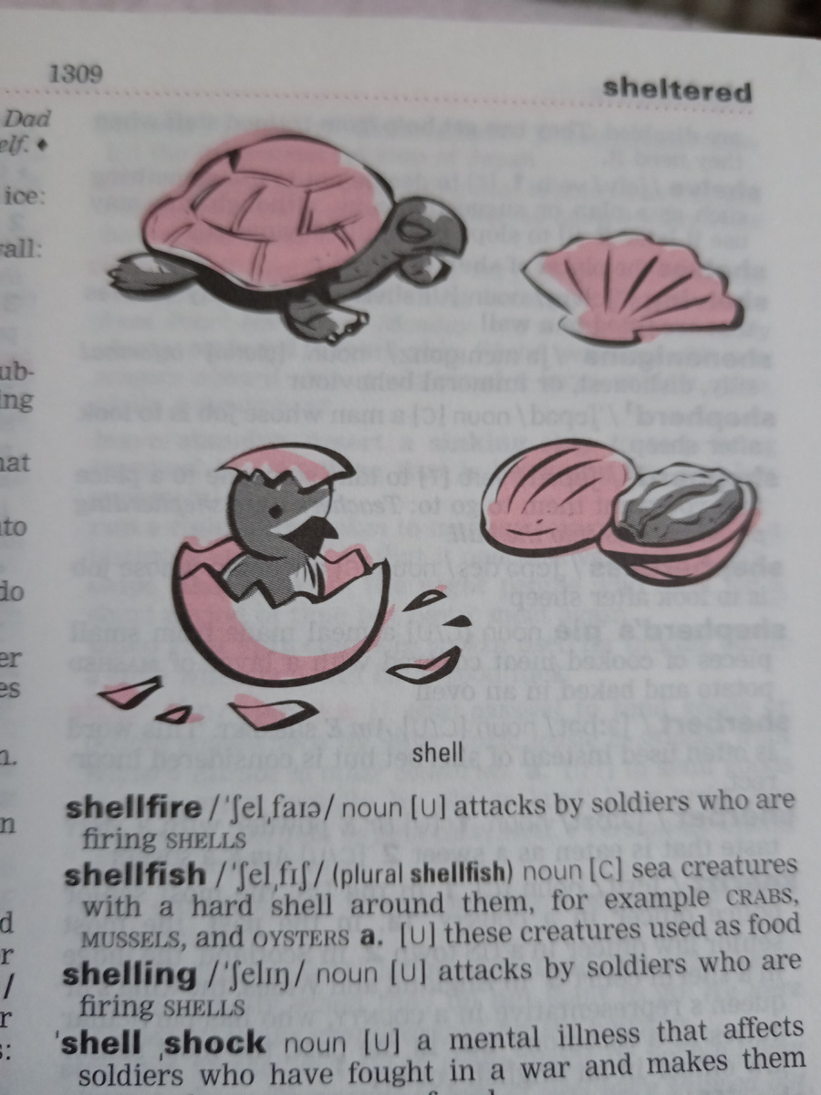 /шэл/ В далёком морском королевстве жила маленькая, но очень важная деталь — Shell. Она была твёрдой и прочной, как настоящий доспех, и защищала тех, кто в ней жил. У краба она была панцирем, у улитки — домиком, а у черепахи — крышей. Shell была настолько надёжной, что её даже использовали в строительстве воздушных кораблей и быстрых машин. Однажды Shell решила отправиться в путешествие по миру. Она побывала в лесу, где встретила ореховую скорлупу и яичную оболочку. Они были такими тонкими и хрупкими, что Shell почувствовала себя важной и сильной рядом с ними. Но однажды к ней подошёл мудрый старец и сказал: "Shell, ты сильна и защищаешь многих, но иногда ты слишком замыкаешься в себе. Прислушайся к миру вокруг, откройся ему, и ты узнаешь, что такое настоящее счастье." Shell задумалась над словами старца и решила попробовать. Она отправилась в город, где жила среди людей, и вскоре услышала, как кто-то сказал: "Он наконец-то вышел из своей скорлупы!" Shell поняла, что это про неё, и