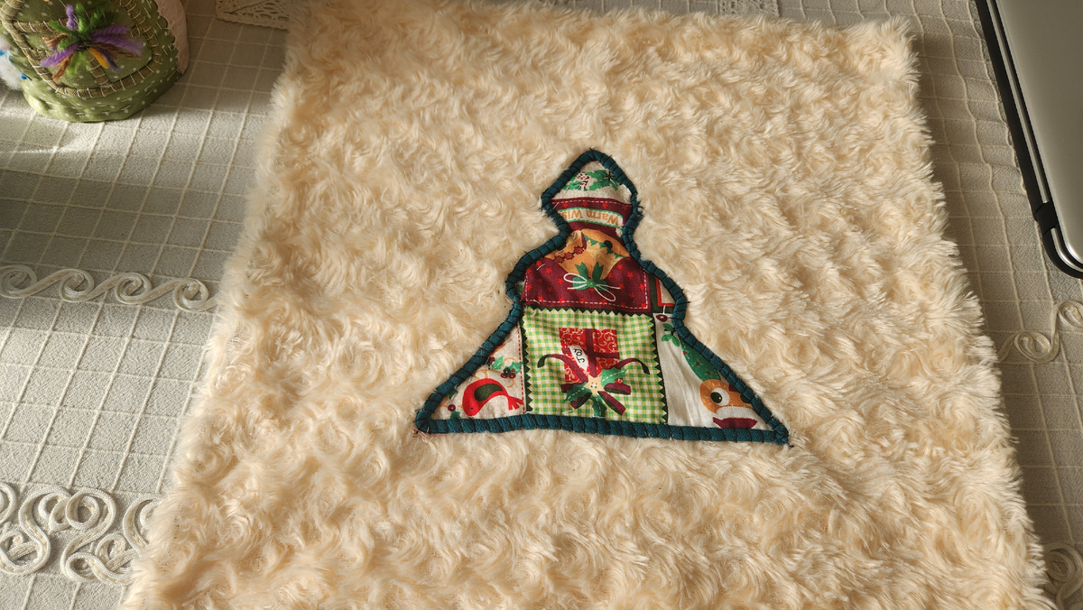 На фото наволочка из магазина Фикс Прайс, которая была в коллекциях зимних товаров пару лет назад в продаже сети этих магазинов. Я купила ее, так как она была мягкая, приятная на ощупь, и я могла ее отлично использовать в зимнем декоре интерьера. В этом году я решила сделать на ней небольшую аппликацию в виде ёлочки. У меня от какого-то предыдущего творческого проекта осталась заготовка, вырезанной по шаблону ёлочки из ткани для пэчворка с новогодней тематикой. Для чего я ее вырезала, я уже и не помню. И решила я задекорировать наволочку с помощью этой заготовки. Пришила руками на основу и по контуру ёлочки добавила полоски зелёного цвета, которые нарезала из старого трикотажного платья. Мое любимое занятие. Я просто обожаю работать с полосками ткани и их нашивать. У меня много таких проектов. Эту наволочку на подушке я буду использовать чисто в декоративных целях на стуле, на котором я сижу и работаю за компьютером. Мягко, удобно, красиво.