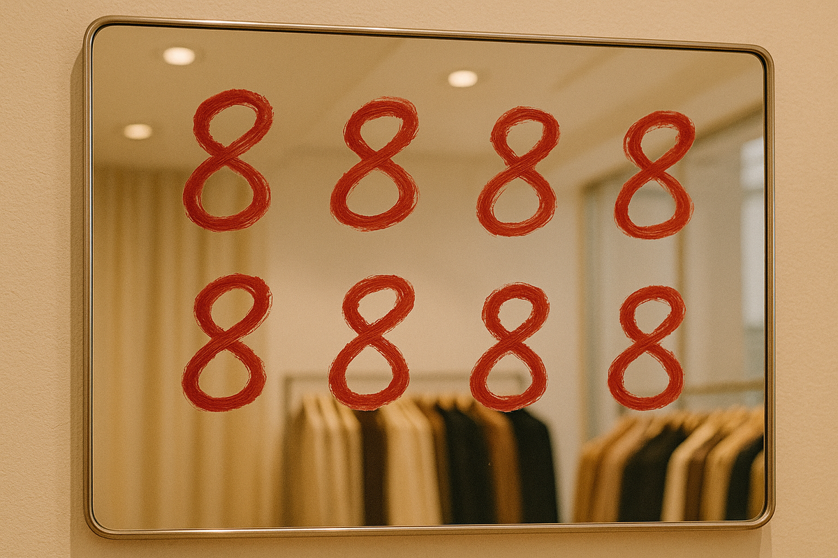 На огромном зеркале вдоль стены, размазанными мазками, небрежно и торопливо была выведена цифра "8". Ряд за рядом, снова и снова. Он вгляделся в отражение и заметил его.