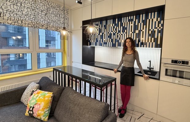 Яркий интерьер и много хранения Как превратить маленькую студию в стильное пространство, где каждый метр работает? Узнайте в нашем новом румтуре! Герой румтура: дизайнер интерьера Оксана Олейник обустроила интерьер для девушки, которая живет за городом. В этой квартире она планирует периодически останавливаться, когда будет задерживаться в центре столицы допоздна или на выходные. Кратко о квартире: студия располагается в московской новостройке. Изначально здесь была свободная планировка с выделенными мокрыми точками. В результате возведения перегородок удалось обустроить кухню-гостиную, длинный коридор, спальню, совмещенный санузел. В основе интерьера лежит цветовая модель CMYK, в которой гармонично объединены четыре основных цвета: голубой, желтый, пурпурный и черный. Эти оттенки не смешиваются, а деликатно накладываются друг на друга, создавая уникальную яркую палитру. Внимательно рассмотрите комнату: кухня лаконично вписана в интерьер и дополнена акцентными фасадами и узкой барной с