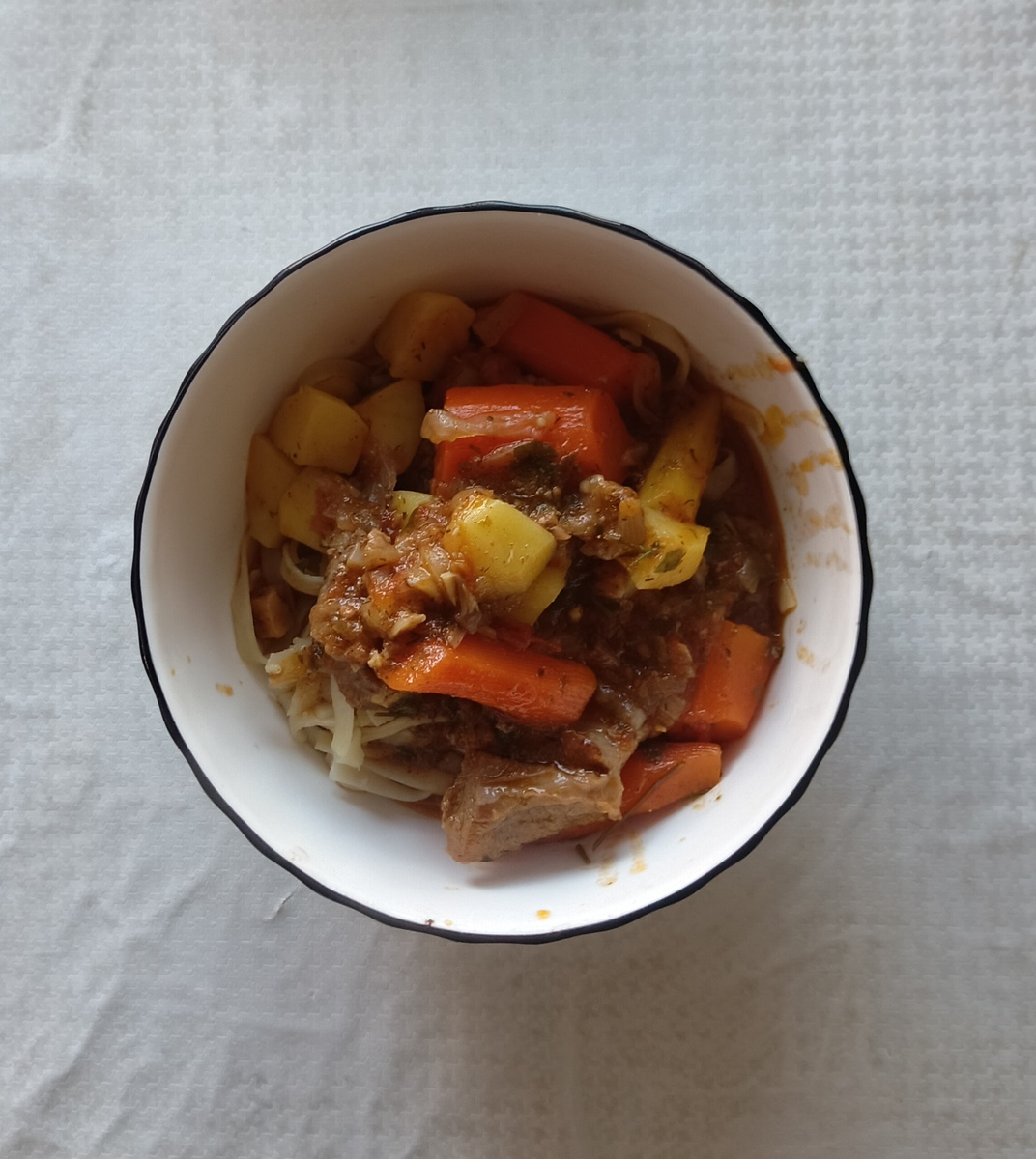 Сегодня думал что ничего не буду делать. Большая часть дня, собственно такой и получилась, диван - кухня - диван. Но что то мне сегодня захотелось лагман, поэтому я поднял свою пятую точку и пошëл готовить лагман. Думаю что все знают, как его готовить, поэтому всë подробно расписывать не буду, но опять таки, так его готовлю я, кто то по другому. Говядину обжарил с луком, добавил мелкую морковь, заготовку из томата, чеснок, лавровый лист, приправу, соль, потушил немного. Добавил воды, тоже поварил до размягчения мяса и моркови, добавил картофель и варил до готовности. Лапшу отвариваю отдельно и добавляю уже в тарелку. Вкусно, просто. Мне вообще нравятся такие блюда. Первое и второе в одной тарелке. Что бы пожирнее, понаварестее. Раньше добавлял много специй, что бы было поострее, но сейчас стараюсь лишний раз вкус блюда специями не забивать. Вот ещë что заметил, когда что то готовишь с томатной пастой, она даëт блюдам ненужную горечь, поэтому лучше использовать домашние загот