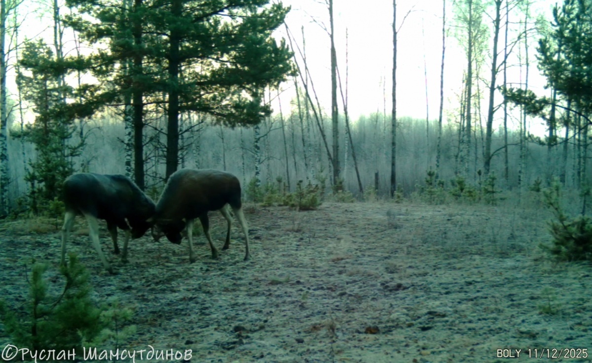 Два лося подрались перед камерой в Нижегородской области. Животные попали в фотоловушку, установленную волонтером Русланом Шамсутдиновым. Кадры были сняты ранним утром 12 ноября в одном из нижегородских лесов. На них видно, как лоси сцепились рогами на открытой поляне. Они бодались около минуты, а затем просто вышли из кадра. Чем завершился этот «конфликт», осталось неизвестным. Ранее мы сообщали о том, что детеныш афалинов появился на свет в дельфинарии Нижнего Новгорода. Самые интересные и срочные новости читайте в Telegram-канале «В городе N»
