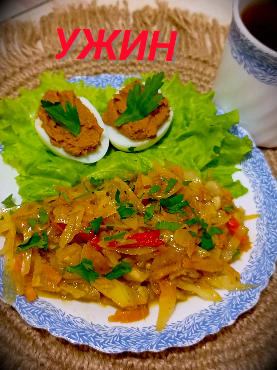 Ну вот и ужин. На ужин я потушила овощи, это: лук, морковь, перец, черри, кабачок (все эти овощи из моего огорода) и ещё капуста, ее я в этом году не выращивала. Тушила с водичкой и со сливочным маслом. При подаче ещё взяла вареное яйцо и намазала на него, так по богатому печеночный паштет. 😉Подложкой послужил лист салата. Плюс чай, свежезаваренный, ароматный, с нотками бергамота, чтобы вечер был по-настоящему уютным. Но был ещё и перекус, небольшой, но приятный: я отрезала кусочек своей чудесной творожной запеканки, той самой, с клюквой, красной смородиной и ванилью, что тает во рту. И к ней - цикорий с молоком, тёплый, обволакивающий, словно мягкое одеяло. Сегодня весь день отдыхаю. После ночной смены как-то ничего не хочется, только тишины и покоя. Завтра, наверное, пойду прогуляюсь в парке, подышу свежим воздухом, а пока – пусть этот день будет посвящён полному расслаблению и неспешному наслаждению простыми вещами: вкусной еде, чашке горячего чая и возможности просто быть.
