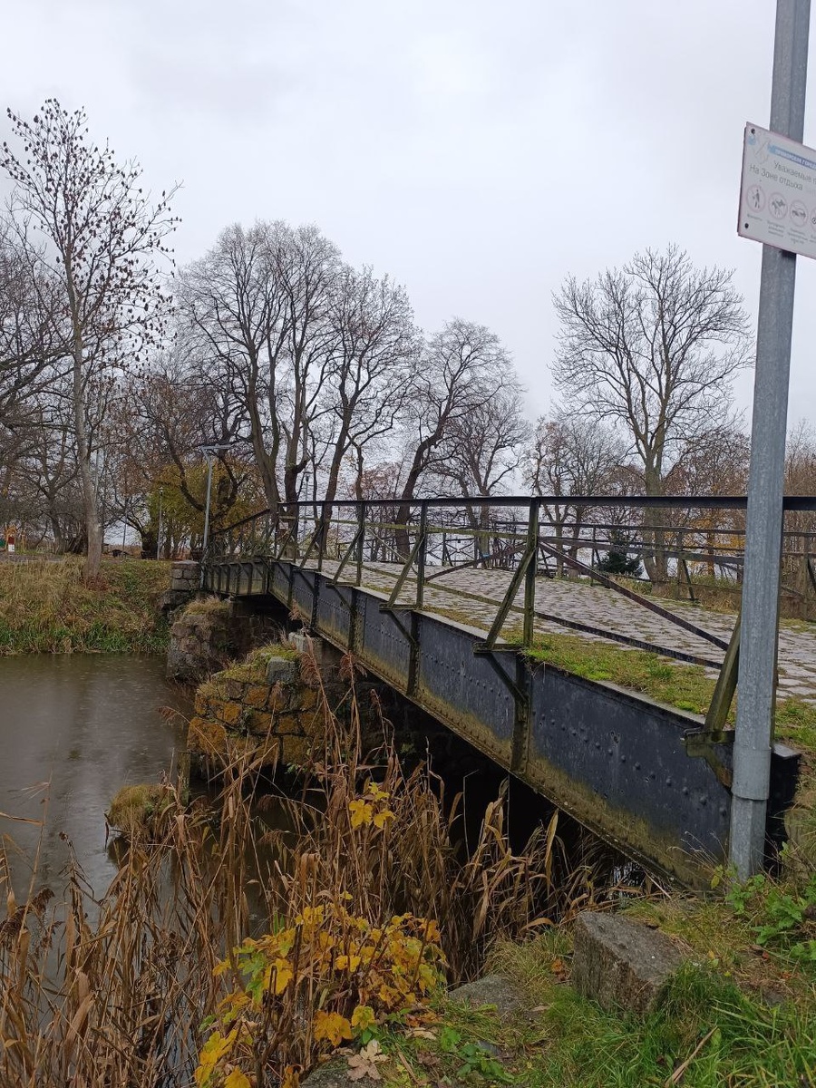 Приходилось ли вам когда-нибудь самостоятельно без каких-либо механизмов открывать пролёт подъёмного моста? Думаю, что вряд ли. А вот в самом маленьком городе Калининградской области - Приморске (до войны Фишхаузен) - имеется самый маленький в Европе подъёмный мост, где сие упущение можно исправить. Мост, предположительно построенный в ныне существующем виде в конце 19 века, вымощен булыжником. Состоит из двух пролетов, разделённых зазором шириной около 50 см, который был необходим для прохождения лодочных мачт фишхаузенских рыбаков. Ну, а чтобы и сверху по мосту можно было передвигаться, то зазор этот закрывается четырьмя откидными железными пластинами. Поднимаются они и опускаются просто руками и сделать это по сути может любой. Главное, чтобы сил хватило. Мост на этом месте считается существовал давно и изначально связывал территорию замка Фишхаузен с городом. Сейчас от замка остались лишь небольшие руины, а по мосту можно пройти в уютно обустроенное городское пространство на берегу
