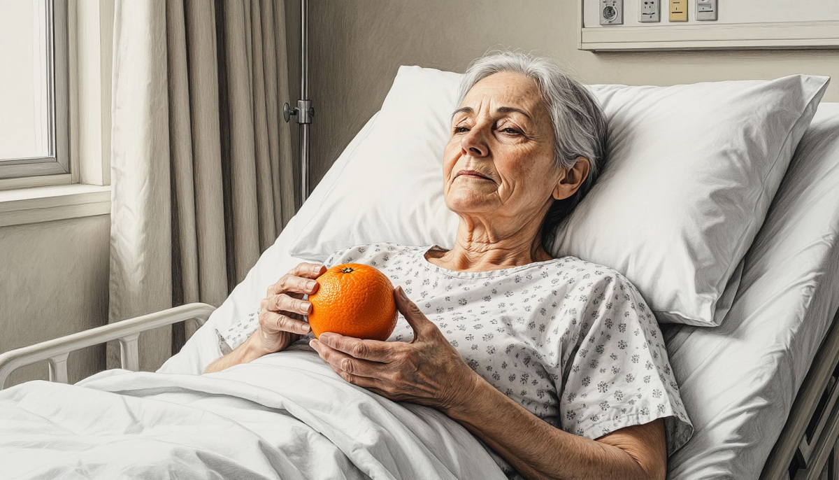 Она закрыла глаза, и на её лице застыла блаженная, безмятежная улыбка. Её рука, лежавшая поверх одеяла, потянулась к мандарину. Хрупкие пальцы сомкнулись вокруг него, будто вокруг самой большой драгоценности в мире.