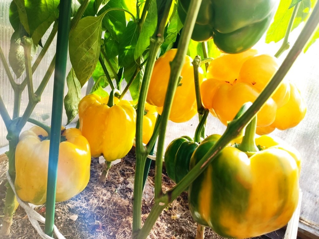 Не только сама посажу, но и продам семенами и рассадой эти сорта перца, за который не стыдно. Покажу тут самые урожайные сорта сладкого перца, которые мне понравились больше всего. А заодно отвечу тем, кто весной мне задавал вопросы про перец. Я тогда только высадила рассаду показывала как стану подвязывать перец парами. И кто-то написал: «Не интересно читать! Вы должны сразу показывать конечный результат! А то блогеры толкут воду в ступе... А урожай обычно не показывают. Им главное что-то написать, а потом может быть ничего и не выросло...» У меня всё выросло. Это уже не первая статья с ежегодной фразой: «Перец у меня нынче шикарный!» Сорт Желтый Квадрат с толстым мясистыми стенками Хотя фразу пора переделать на более актуальную: «Перец у меня всегда шикарный!», — но боюсь сглазить... Итак, начну с желтого сорта Желтый Квадрат. Как раз Васька зашел в теплицу и я положила рядом перец, чтобы вы смогли оценить размеры плодов. Коты перец не едят, иначе Васька бы из теплицы летом не уход