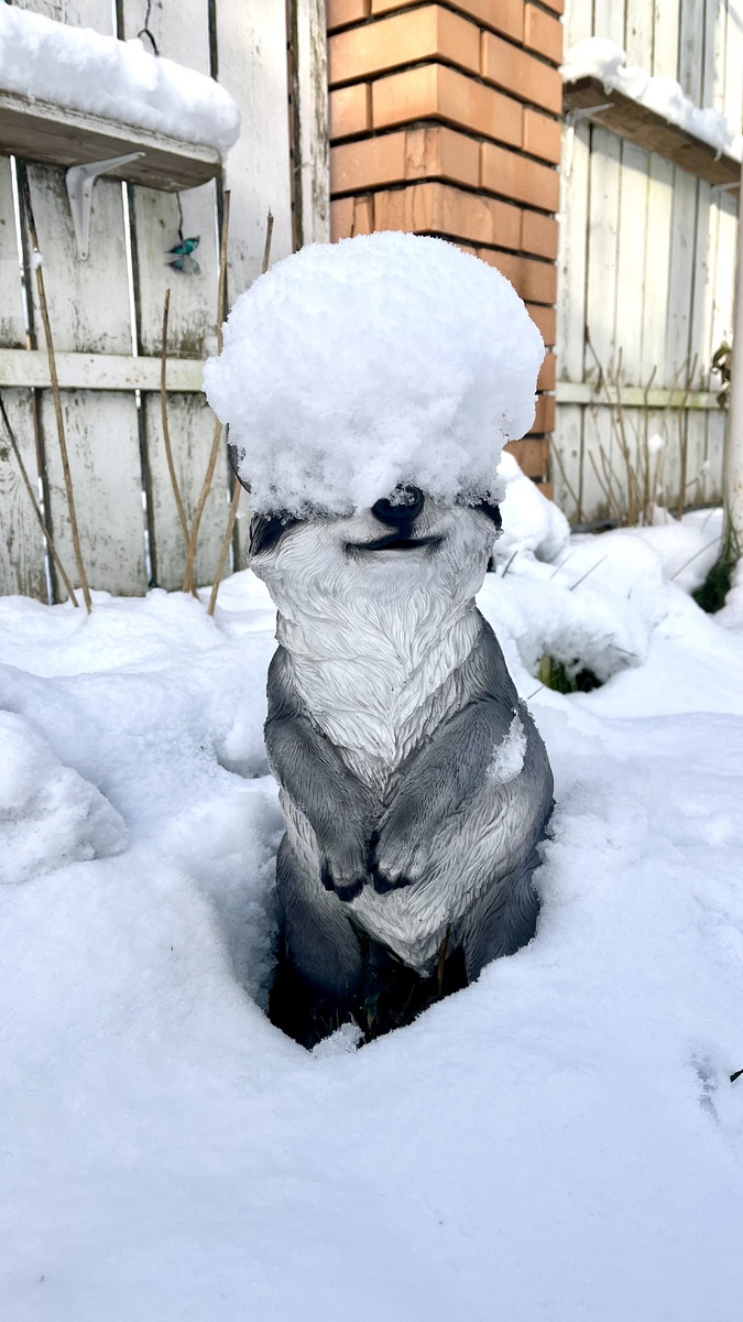 Неожиданно наступила зима. Снегопад за несколько часов превратил грязь и серость в расписную сказку. Буквально за 1 ночь вокруг появилась зимняя сказка. Очень красиво, НО… мы не успели спрятать на зиму статуэтки и их завалило 🙈 Вот так сейчас выглядит наш Сад Енотов: Посмотрите, как они оказались под снежными шапками) Тот, что выше на картинке, это енот медетирующий 😁 правда теперь под снегом А следом статуэтка мама с малышом тоже под снегом 🙈 А этого вообще практически не видно стало 🙈 А это сразу кажется супер суровым. А вот у каратиста енота кажется начался новый уровень подготовки)) с закрытыми снегом глазами А этот видимо снегу рад 😉 ведь сразу вокруг стало визуально чище и приятнее, не так серо Еноты на заборе тоже без снега не обошлись) Посмотрите только на этого скалолаза. Или на этого, на качелях) А у этого ещё и на хвостике немного снега приютилось Да и этот на столбе держит маленький сугроб А вообще наш сад со статуэтками енотами выглядит теперь вот так 🙈