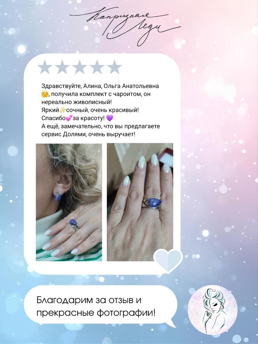 Ваши отзывы — наше вдохновение💌 Спасибо каждому из вас за теплые слова и красивые фотографии с украшениями из нашего магазина. Ваше доверие — самая ценная награда для нас! Мы всегда стремимся предлагать качественные и стильные ювелирные изделия, которые подчеркивают вашу индивидуальность и приносят радость. Продолжайте делиться своими впечатлениями и снимками📱 Как оставить отзыв: – Перейдите в раздел с отзывами на странице сообщества ▫️ВК: vk.com/reviews-195494352 или поделитесь впечатлениями на ▫️Яндекс: clck.ru/3Q76eA – Поставьте оценку, прикрепите фото и напишите несколько слов о покупке и магазине💫 С искренней благодарностью, Ваша «Капризная Леди» 🩷 #отзывы@kaprizlady С искренней благодарностью, Ваша Капризная Леди💎
