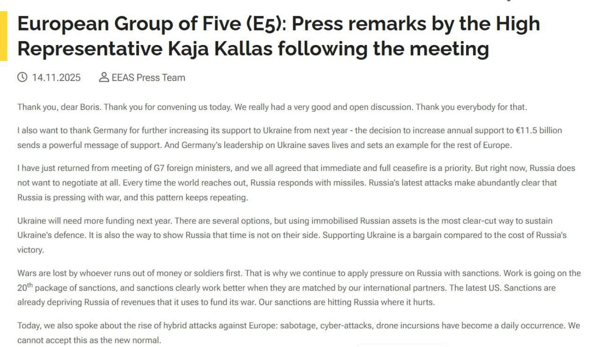 Евросоюз ведет работу над 20-м пакетом антироссийских санкций, сообщила представитель ЕС по иностранным делам Кая Каллас, после встречи с министром обороны Германии Писториусом в Берлине. Она в очередной раз призвала к конфискации замороженных активов. "Войны проигрывает тот, у кого первым заканчиваются деньги или солдаты. Именно поэтому мы продолжаем оказывать давление на Россию санкциями", - заявила Каллас.