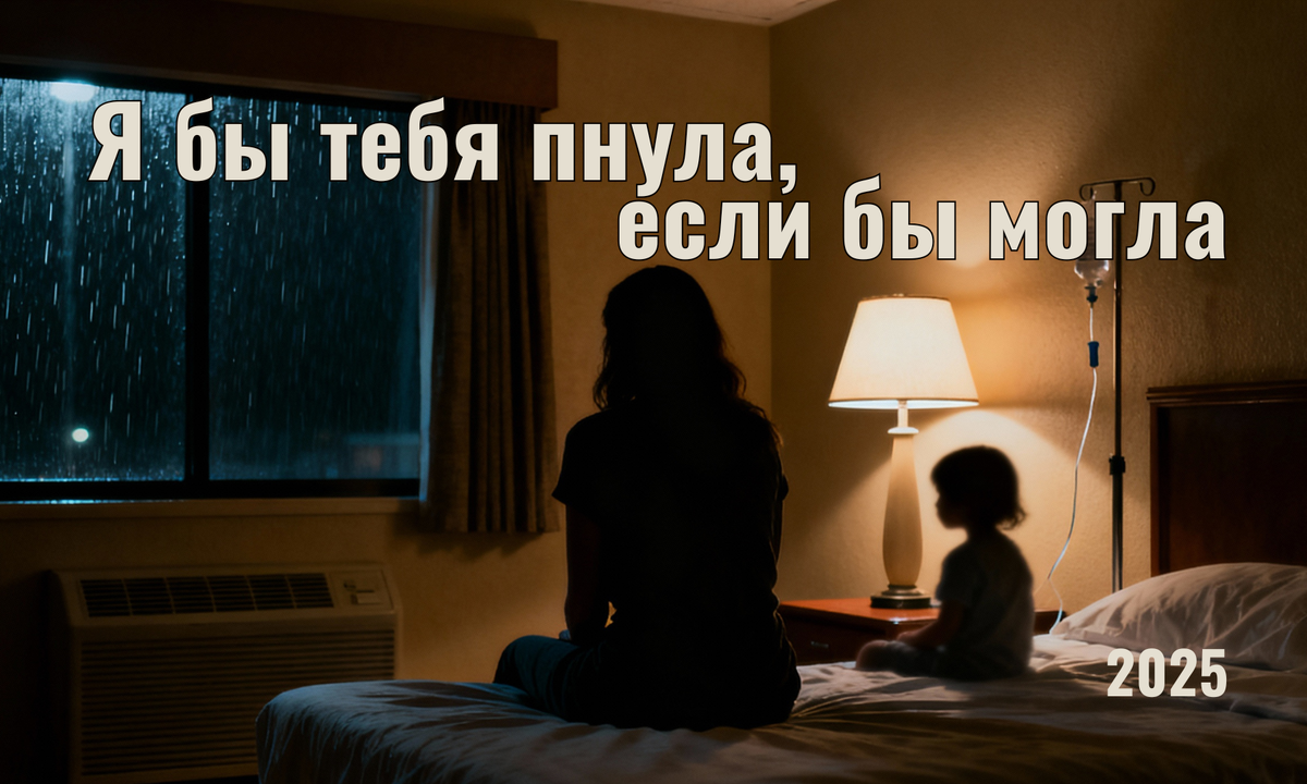 Название «Я бы тебя пнула, если бы могла» — не случайное: здесь героиня хочет сопротивляться обстоятельствам, но не может даже это. Главные метафоры — обрушение потолка, затопленный дом, мотель как временное убежище и напряжённая атмосфера ограниченного пространства. Невидимость дочери на экране — сильный приём: она перестаёт быть отдельной личностью и воспринимается героиней только как бремя, требующее бесконечной заботы.