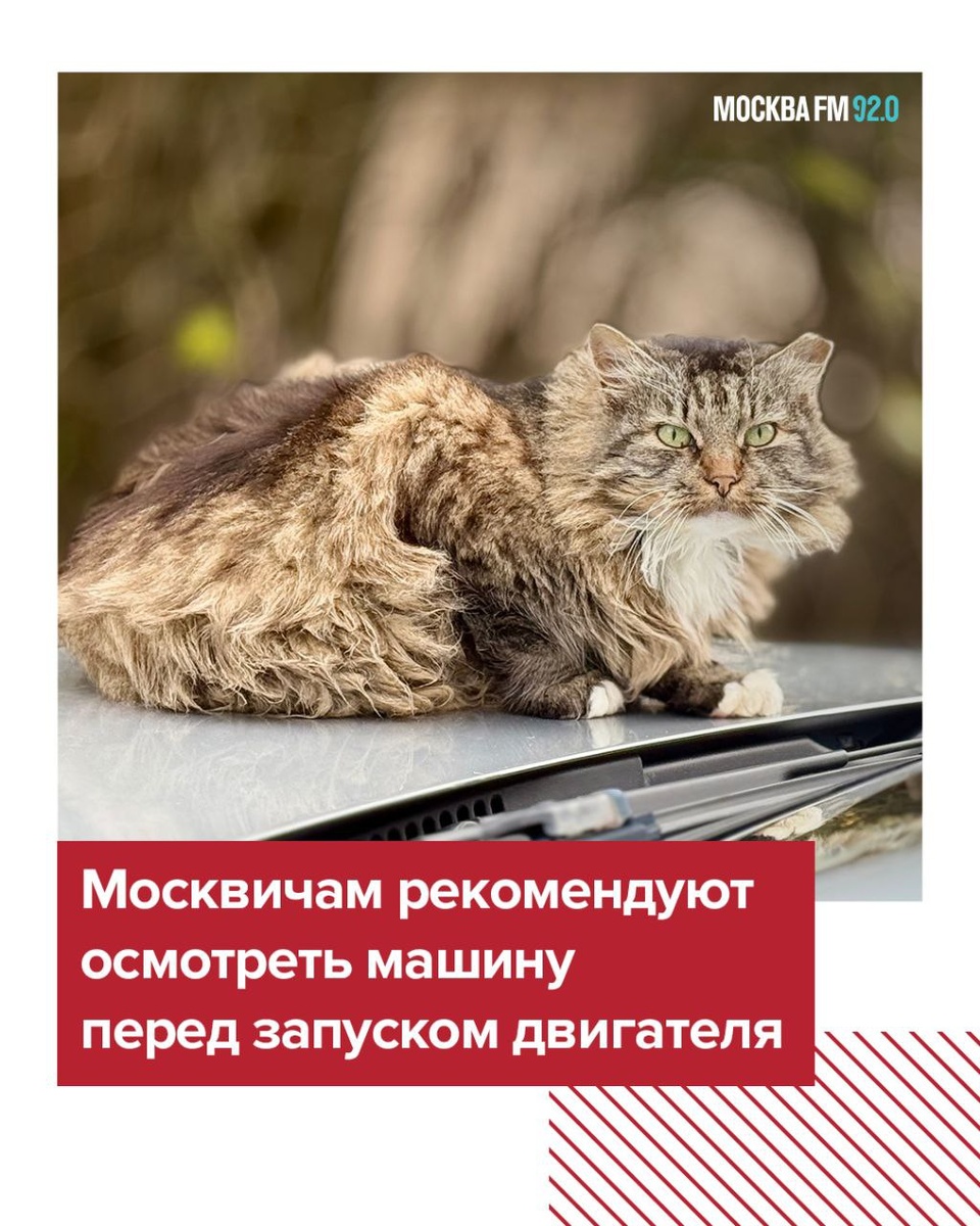 🙏 ❗️Простая привычка может спасти животное: достаточно постучать по капоту автомобиля С наступлением холодов бездомные усатые начинают искать тёплые убежища, и таковыми зачастую становятся автомобили горожан. Запуск двигателя может привести к критическим травмам у животных и даже смерти. Кошки могут прятаться не только под капотом, но и в колёсных арках. Автовладельцам рекомендуют: 🔹 провести небольшой осмотр машины 🔹 пройтись вокруг авто, обратить внимание на следы лап на снегу 🔹 несильно постучать по капоту или колёсам, а также прислушаться к звукам 🔹 прохожие, которые заметили животное, могут дождаться водителя или оставить на видном месте записку с предупреждением 📞 Если пушистого пассажира не удаётся выманить или достать из укрытия, следует вызвать спасателей, например из «СпасРезерва». 📌 Подписаться на Москва FM / Наш чат-бот / Мы в MAX