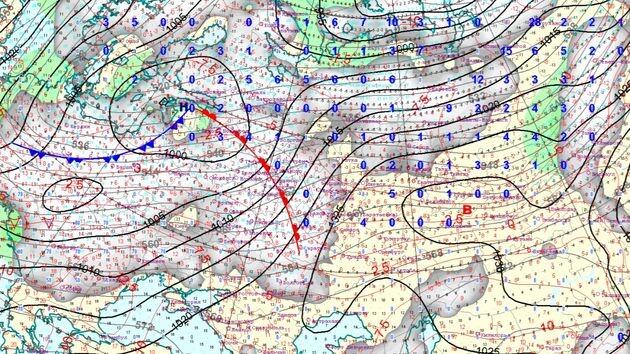 В ночь на понедельник антициклональный характер метеоусловий сохранится. При переменной облачности и отсутствии осадков воздух остынет до −1…−3. Днём пройдет тёплый атмосферный фронт, связанный с североатлантическим циклоном с центром над Прибалтикой, из-за чего станет облачно, пройдут осадки в виде снега, мокрого снега и дождя, на западе и северо-западе Подмосковья – утром местами ледяные дожди, которые могут зацепить и Москву. Ветер южных румбов усилится до 6–11 м/с. Температура воздуха к вечеру повысится до +2…+5°. Атмосферное давление будет падать и составит 738 мм рт. ст., что заметно ниже нормы. Фото: © Центр ФОБОС