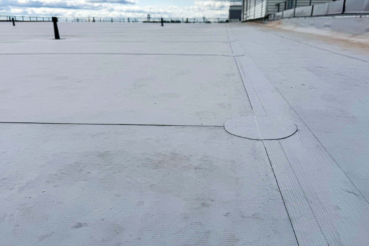 Полимерные мембраны — один из технологичных материалов для устройства плоских кровель. Их применяют в промышленном и гражданском строительстве, а также при реконструкции зданий, где важны скорость монтажа, малый вес и устойчивость к климатическим нагрузкам. Основные типы материалов — ПВХ-мембраны, ТПО-мембраны и ЭПДМ-мембраны. У каждого есть свои свойства, но базовая конструкция схожа: это рулонный многослойный полимерный материал, который укладывается сплошным полотном и создаёт герметичную гидроизоляционную систему. Современные мембраны производят в виде многослойных полотен, которые включают: • рабочие полимерные слои, обеспечивающие водонепроницаемость; • армирующую основу (полиэстеровую сетку или стеклохолст) — повышает прочность на разрыв и стабильность размеров; • стабилизирующие добавки — обеспечивают стойкость к ультрафиолету, температурным колебаниям и старению. Для ПВХ-мембран характерна высокая эластичность за счёт пластификаторов; ТПО-мембраны отличаются термостойкостью и