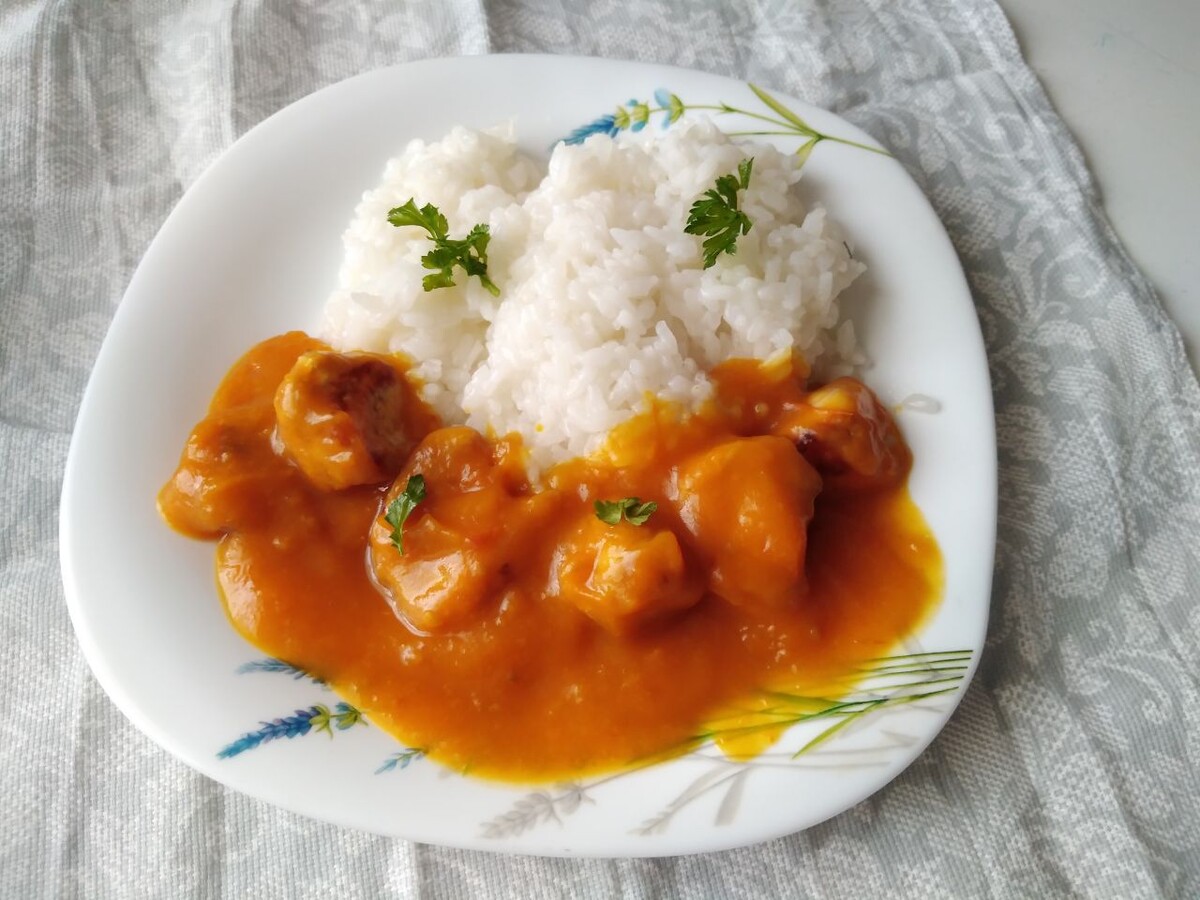 Всем привет! Невероятно вкусный и пряный соус я начала готовить из тыквы, который отлично подходит к мясу. • Чистим тыкву от кожуры и семечек. Нарезаем кусочками, можно довольно таки крупными. • Нарезаем помидор, я использовала замороженный. • Отправляем овоща в кастрюлю и добавляем где-то треть стакана воды. • Кастрюлю ставим на огонь и доводим овощи до готового состояния. •Когда тыква и помидор становятся мягкими, перебиваем их в пюре погружным блендером. • Добавляем сливки (либо жирное молоко), соль, приправу кари и ещё раз всё перемешиваем блендером. • Доводим соус на огне, чтобы он согрелся и все ингредиенты подружились, как только начнёт булькать сразу выключаем. • Всё соус готов. Список продуктов, которые понадобятся для готовки этого рецепта: тыква в очищенном виде - 400 гр.; помидор - 400гр.; сливки (жирное молоко) - 150 мл.; приправа кари - 1 ч.л.; соль - по вкусу; вода - для жарки. Соус хорошо дружит с мясом, вкусно, пряно, аромат бомбический.