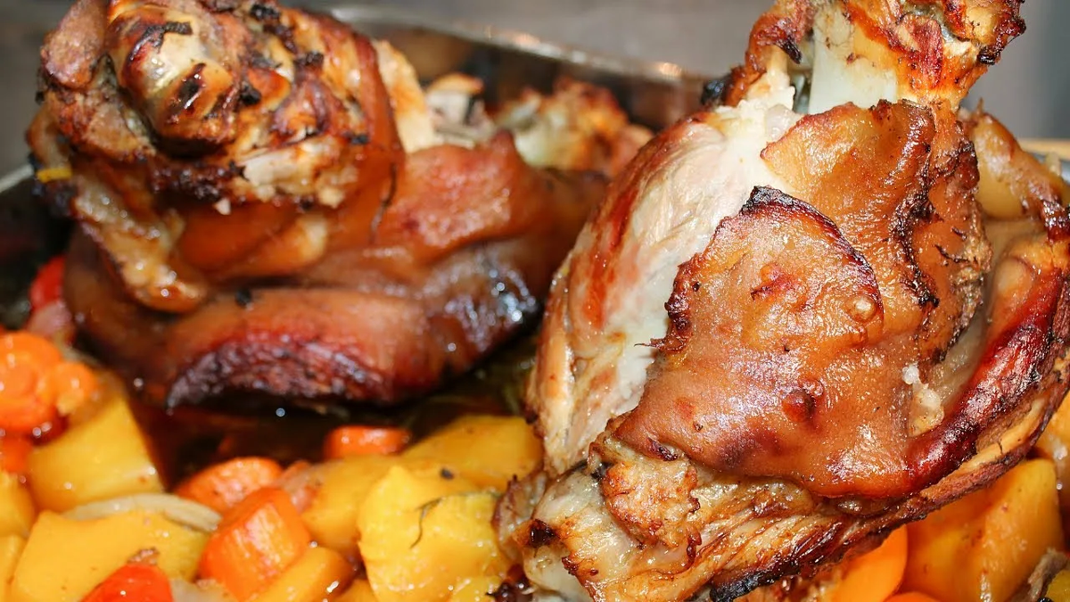 - Овощи впитывают сок рульки: Они становятся невероятно сочными и служат великолепным гарниром.