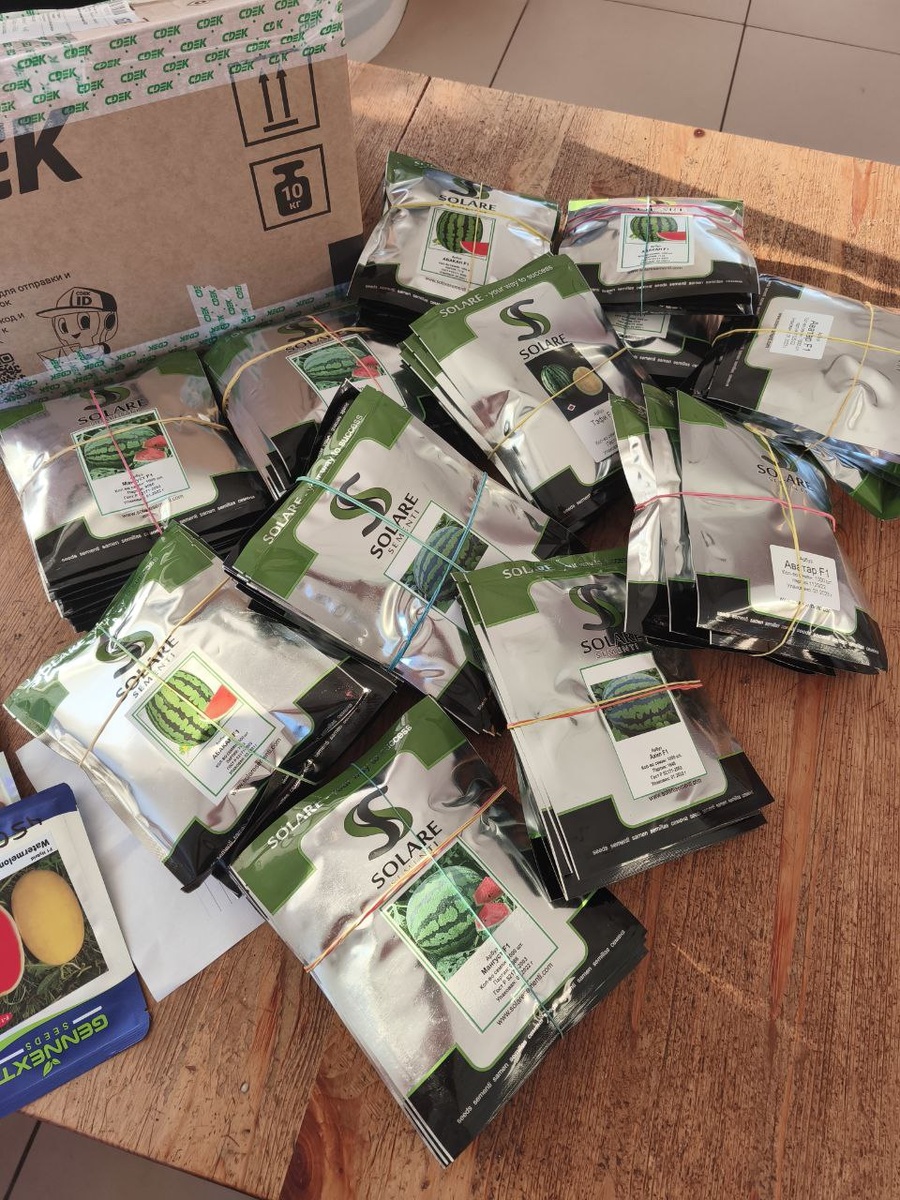 Стоит добавить, что посылка с нашим основным семенным фондом пришла днем ранее. Здесь 76 тысяч семок. Только f1. Мы богаты и знамениты. 😎😎😎 #бахча #семена