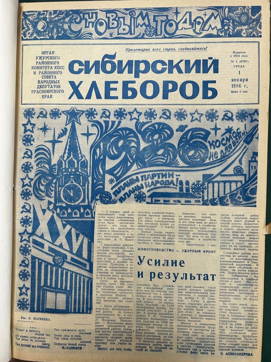 #Новогодняя_обложка В преддверии Нового года захотелось посмотреть подшивки праздничных номеров. Они все такие разные! Решили, небольшой проект сделать «Новогодняя обложка». Мы опубликуем 12 обложек праздничных номеров газеты «Сибирский хлебороб». Сегодня показываем номер от 1 января 1986 года. Обложку украшает рисунок Е. Матвеевой. Встречали тогда год Красного Огненного Тигра.