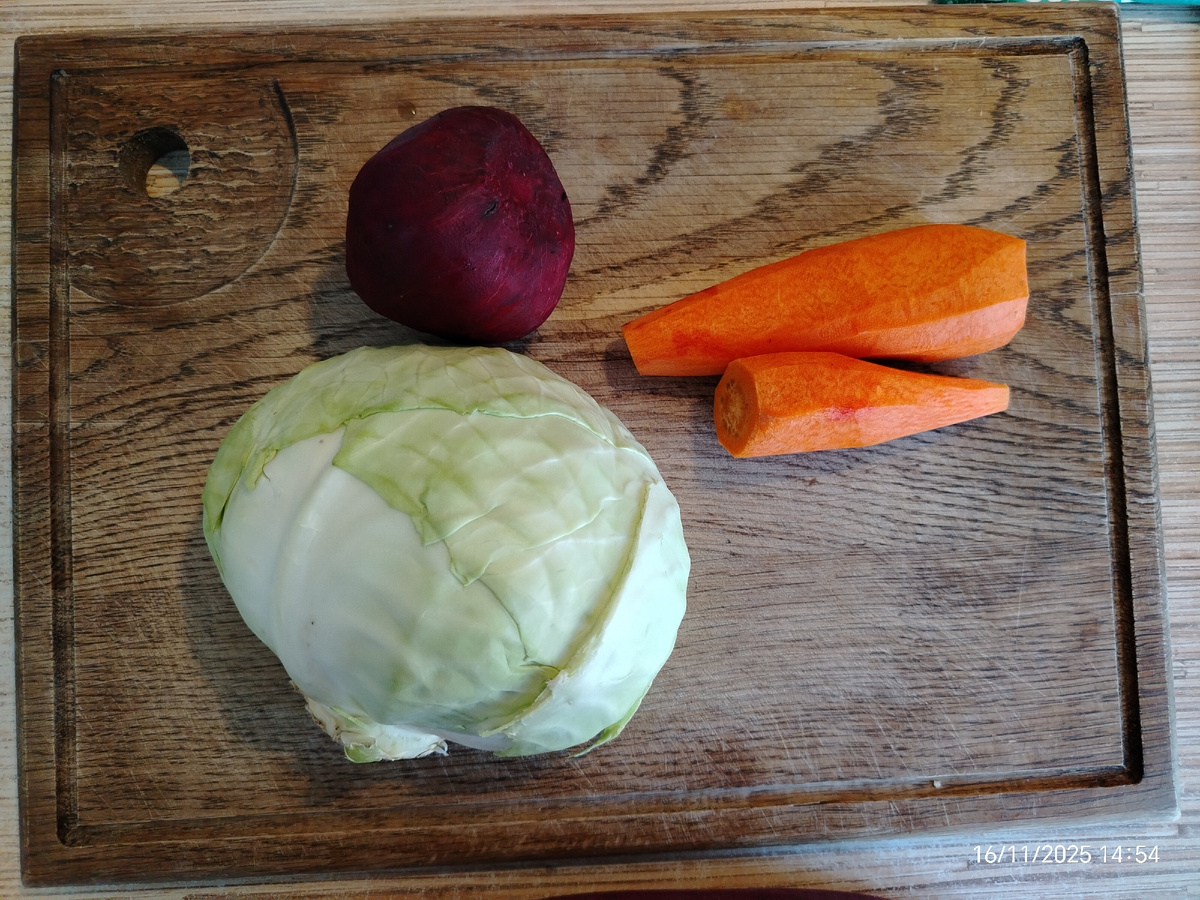 Вспомнила салат такой, делала раньше иногда. Вроде полезный) А что из свежих овощей не полезно) Взяла небольшую свёклу, две моркови, капусты немного. Все сырое. Морковь и свёклу потерла на мелкой терке. Самое моё не любимое занятие на кухне - что-то тереть на терке. Капусту нашинковала. Ещё решила добавить 1 луковицу. Все смешала, добавила масло подсолнечное, посолила. И вот такой симпатичный салат получился. Мой ужин - салатик и рис с овощами и куриным филе.