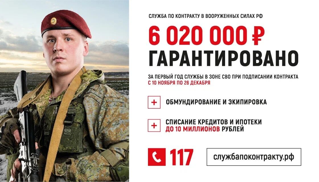 Вступай в ряды настоящих патриотов, присоединяйся к СВОим! ➡️ Чтобы поступить на военную службу по контракту, нужно обратиться в пункт отбора на военную службу (https://clck.ru/3CW3MK)или военкомат (https://clck.ru/3CW3Pp) по месту жительства. Подать заявку можно через единый портал государственных услуг (https://contract.gosuslugi.ru/) или сайт Минобороны России (https://clck.ru/3CW6TK). ❕ Подробности на сайте http://www.krskstate.ru/voen_kontrakts и по телефону 117, военкомат 8(39145)6-31-72 и пункт отбора 8-950-405-38-86.