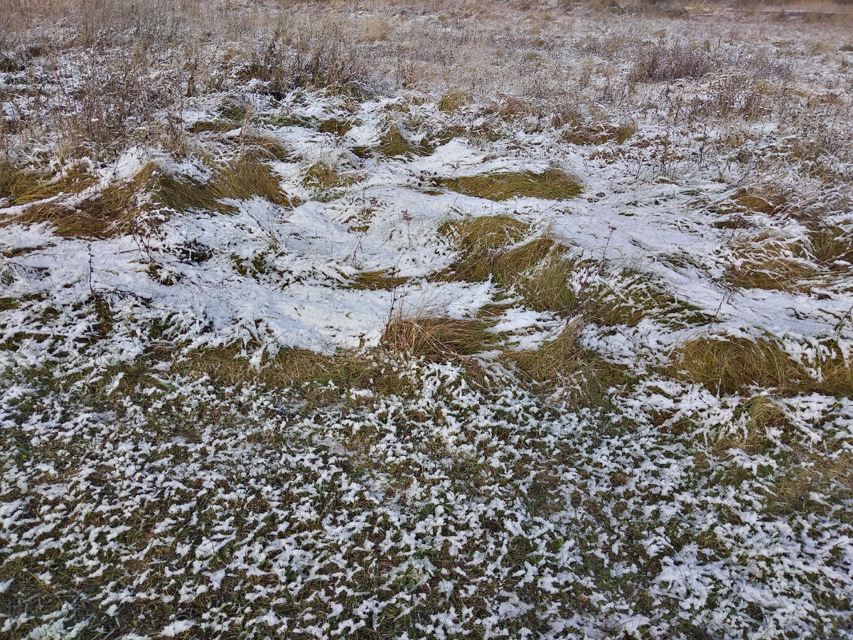 Неожиданно. Два дня назад дождь лил. В пятницу солнце, тепло, до+10. А в субботу... Здрасте - пожалуйте: вечером снежинки полетели, а утром припорошило. И на одном градуснике - 12, а на другом - 8. Выходит в среднем - 10. Хорошего мало. Нет, это не тот первый белый, лёгкий, пушистый снег. Предзимье. В обед гулять с Василием вышли. Солнце, с крыши капает, но траву снежок спрятал. Васька обескуражен: лапами трясёт, снег нюхает, лапки под себя подобрал. Видно, что неприятно ему. Решил согреться, уселся на клумбу, что соседка из колеса сделала. Живая клумба! Как же хорошо, когда вместо пасмурного дня, который нескончаемо тянется и капает на бедную седую головушку, бело и Солнце яркое. Настроение улыбается, давление нормализуется и нога меньше болит. Цветники свои навестила. Запорошило снегом неприглядность осеннюю. Герочка веселая, а примула белым бутоном из-под снега выглядывает, дразнится, не сдаётся. Не радуйся, зима, рано тебе ещё, на понедельник до +12 обещают. Не т