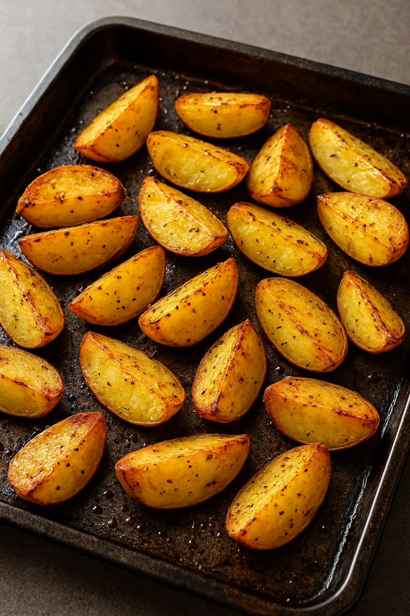 - Для супер-хрустящей версии — после нарезки обмойте картофель и обсушите.