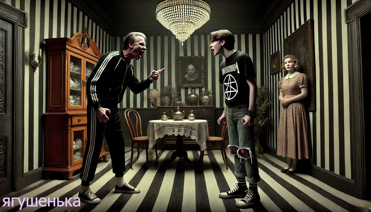 На кухню ворвался сын и встал перед отцом, защищая мать.