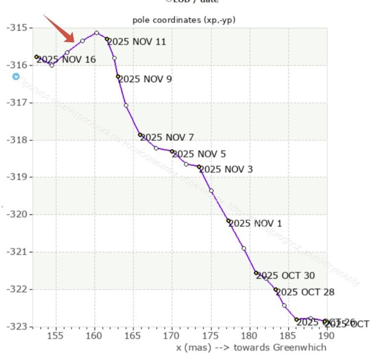 Сильные магнитные бури от 12-13 ноября оказались сейсмоэффективными и в очередной раз существенно сказались на траектории полюса вращения Земли.