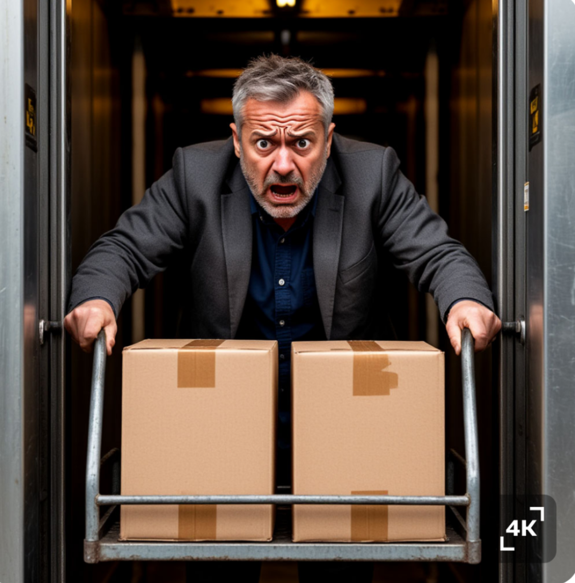 Да, друзья мои, эта тема, к сожалению, никак себя не исчерпает. ☹️ Уже хочется писать о том,как всё чудесно, публиковать красивые виды из окна, но... Пока о невесёлом... Картинка,созданная ИИ по моему запросу - взволнованный мужчина,застрявший в лифте с двумя большими коробками - не совсем точно иллюстрирует ситуацию, в которую попал сегодня муж. Да, он застрял в лифте. В том самом, который несколько дней назад устроил женщине проверку её жизненных ресурсов, пролетая дважды по два этажа. Писала об этом тут⬇️ Вчера в подобную ситуацию попала молодая женщина . Ей,правда, "повезло" , она только один раз пролетела два этажа. Чем, естественно , поделилась в домашнем чате. Чат в очередной раз накрыло бурей возмущения, сменившейся противным ощущением безысходности. Да, с лифтами проблемы каждый день, а ответственность за это никто не несёт. Специализированное предприятие "Практика" ,которое должно обеспечивать бесперебойную и ,главное, безопасную работу лифтов, почему -то невзлюбило