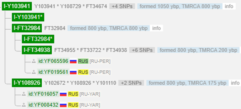 Семья I1-L121>DF29>Z2893>Y11204>Y11205>A14411>Y103941 – к ней относятся 4 человека, жители Пермской земли и Ярославской области: