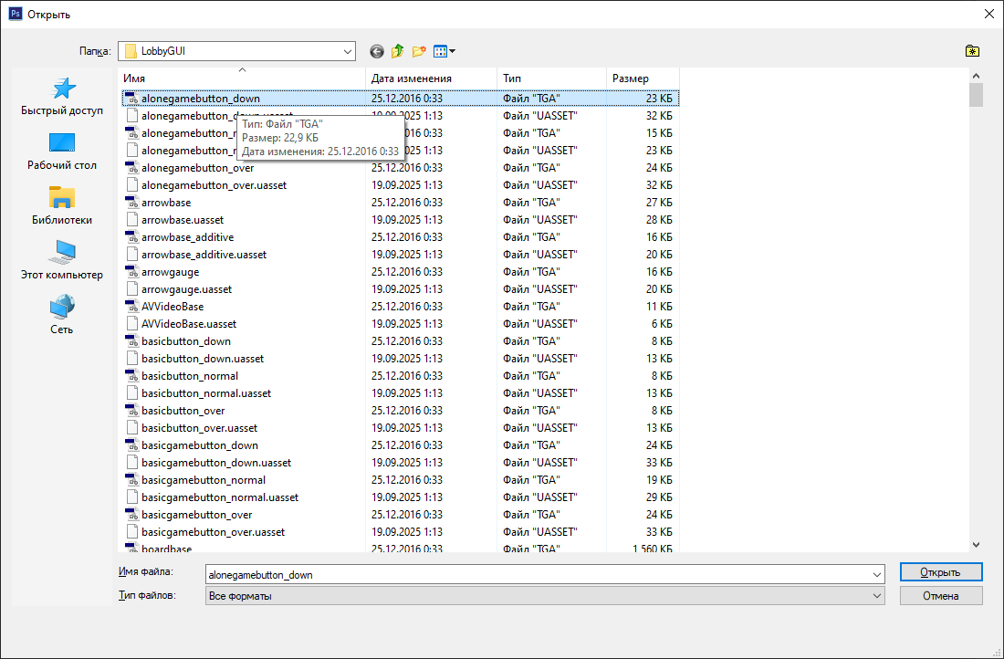 Как сохранить TGA-файл с сохранением его прозрачности в PNG-файл в Photoshop