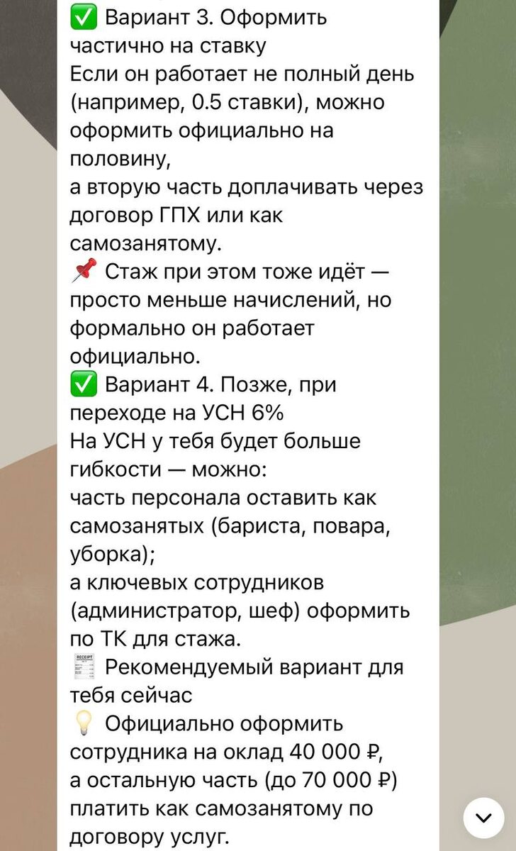 Всем привет. Когда новый клиент еще проверяет нас по нейросетям, предлагая «новые» схемы. Но мы то уже с вами знаем 💪чего стоит игра с СЗ при явной подмене трудовых отношения. Тем более выводя премии через самозанятость штатных сотрудников. Пока ИИ сложно бороться с квалифицированным бухгалтерским/налоговым специалистом