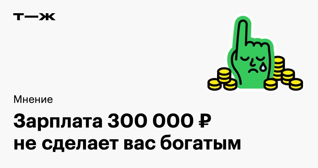С зарплатой 300 000 ₽ вы не станете летать бизнес-классом, не сможете построить дачу, купить новый автомобиль, съездить в дорогой отпуск, не перестанете смотреть на ценники в ресторанах или винных магазинах. Читатель не понимает тех, кого будоражит сумма 300 000 ₽, и считает, что ничего интересного она не даст. Вот его аргументы: https://t-j.ru/inv-tg/300k-not-rich-opinion Согласны? 👍 — все так 👎 — нет, это неправда 😢 — хочется проверить на собственном опыте