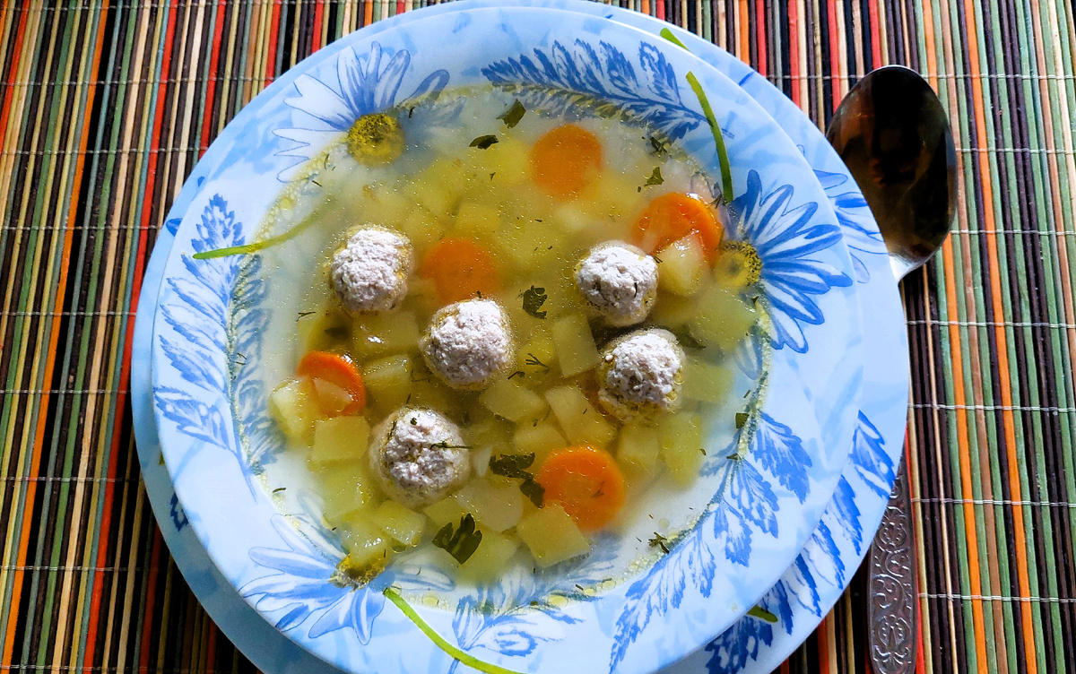 Сегодня хочу рассказать вам очень простой и быстрый способ приготовления самого вкусного и диетического супа из кабачков с фрикадельками. Такой кабачковый суп нам довелось впервые попробовать в турецком отеле пару лет назад. Называется отель "Венеция" в Анталии, может и вы там бывали в это время. Никогда бы не подумала, что в Турции встретим суп из кабачков. Это было так нереально вкусно, что мы решили повторить его у себя дома. Все, кто у нас пробовал этот суп, просили добавки. И вот теперь готовим его только по такому несложному рецепту. Продукты для супа довольно простые : Фарш у меня остался от приготовления мясного рулета. Фарш смешанный - из свинины, филе индейки и филе куриной грудки. Если вы еще не успели посмотреть ранее, как я готовила этот фарш и мясной рулет, переходите по ссылке ниже⬇ Переходим к пошаговому рецепту: 1. Разогреть в сковороде подсолнечное масло, добавить лук с морковью и пассеровать 5 минут. 2. Добавить кабачок, перемешать и готовить ещё 5-7 минут. Жар