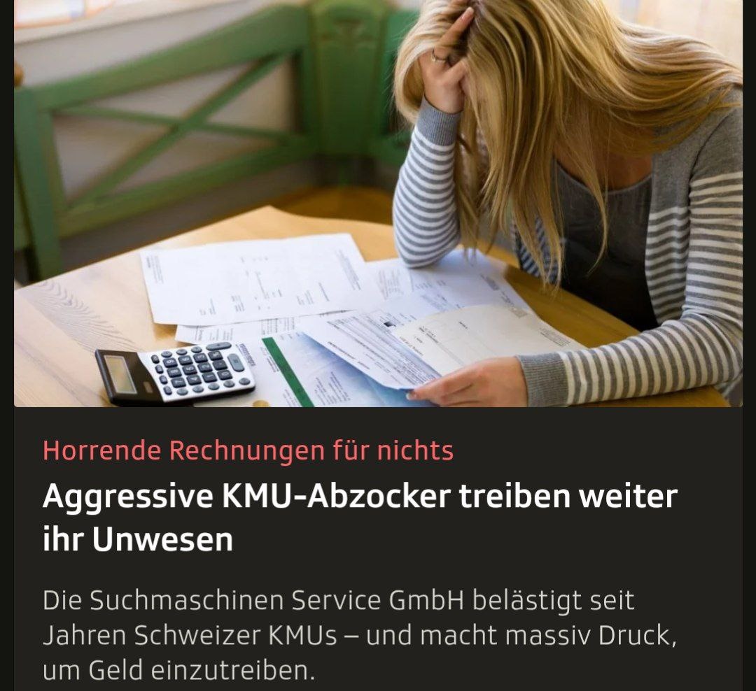 💬 А можно немцам по лапам ударить ? Нет конечно ! Они наши партнёры 🫡 📌 " Огромные счета за ничего — агрессивные мошенники продолжают охоту на малый бизнес Уже несколько лет немецкая фирма Suchmaschinen Service GmbH терроризирует малые и средние предприятия (KMU) в Швейцарии. Сначала её представители заговаривают жертву по телефону, а затем высылают необоснованные счета на несколько тысяч франков. После этого они оказывают сильное давление, требуя оплату. В сети этого сомнительного «поискового сервиса» попалась и владелица ресторана из кантона Берн. Женщина на другом конце провода, вспоминает хозяйка, говорила быстро и много — понять её было трудно. Однако одно она уловила: > «Мне предложили бесплатное обновление, чтобы мой ресторан появлялся в верхней строке поиска Google». Хозяйка согласилась и сообщила свои личные данные. Спустя короткое время она получила договор и счёт от Suchmaschinen Service GmbH примерно на 5000 франков. С учётом пени и сборов сумма выросла до около 60