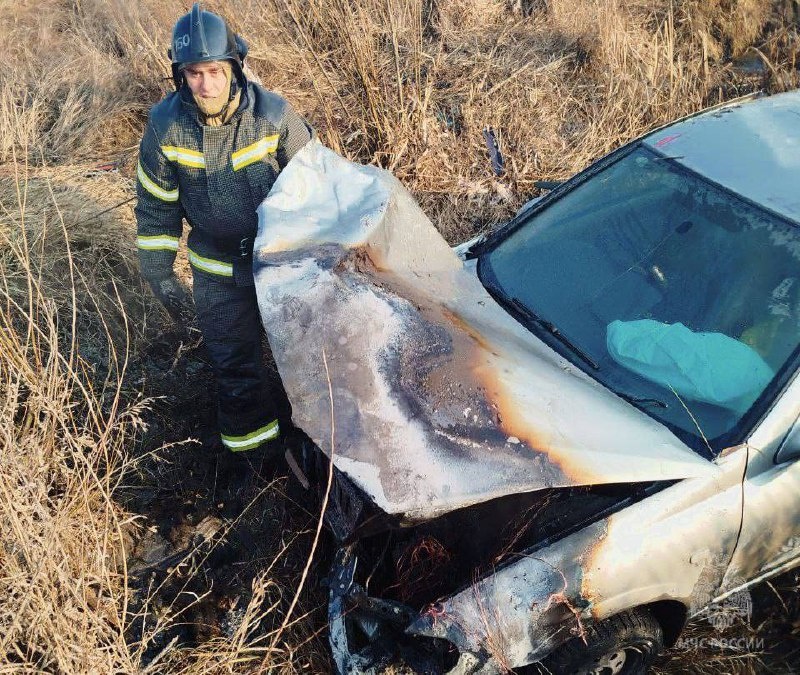 В селе Аромашево автомобиль "Ниссан" съехал в кювет и загорелся. В результате ДТП пострадал один человек. Сотрудники МЧС отключили аккумулятор автомобиля.