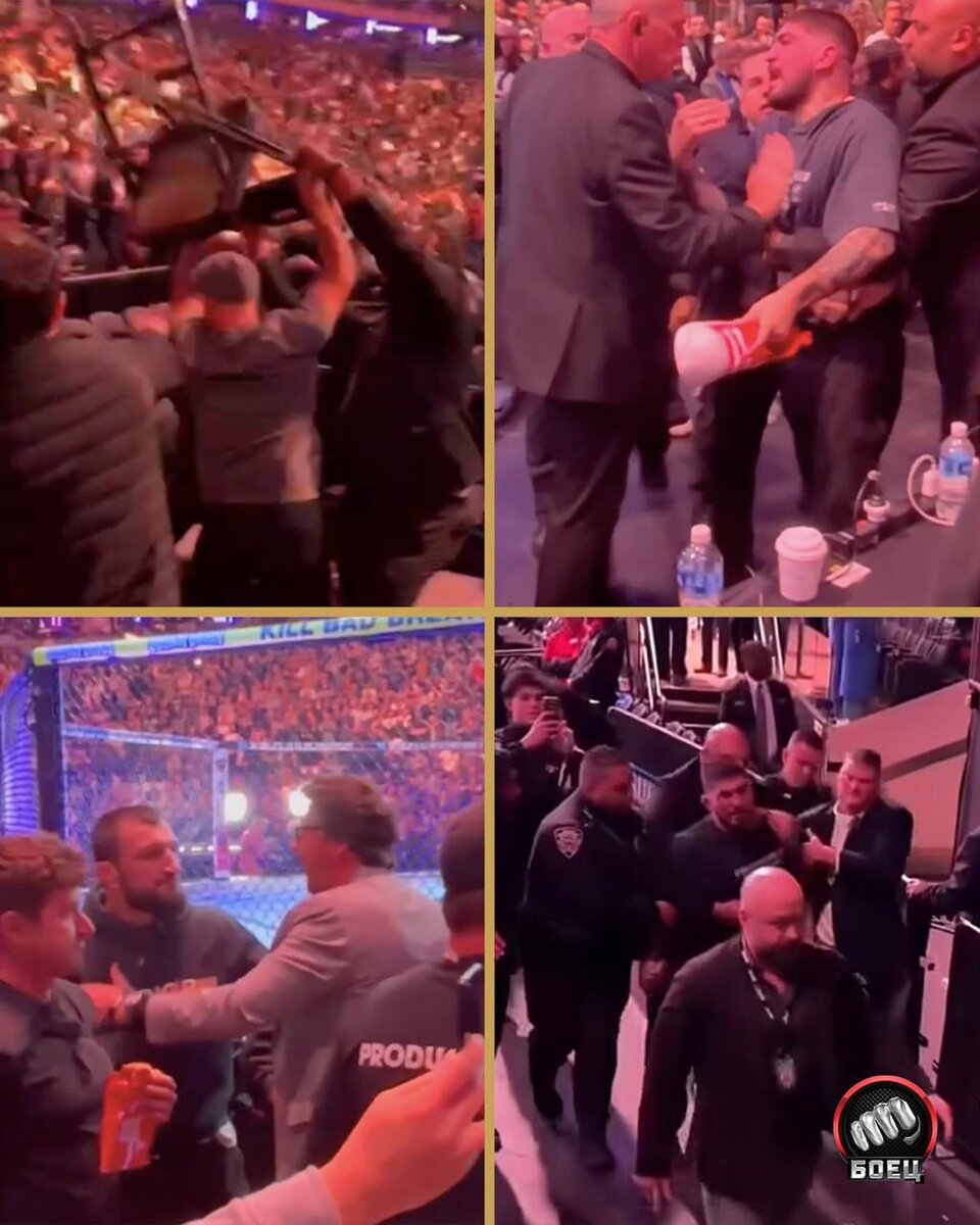 Возвращаемся к потасовке на UFC 322 ⚡️ Стычка действительно вспыхнула между командой Махачева и Дэнисом. На кадрах, разлетевшихся по соцсетям, видно, что в ход пошли даже стулья, а Абубакара Нурмагомедова сдерживал сам Хантер Кэмпбелл. В итоге все парни покинули арену: Диллона вообще под руки вывели сотрудники безопасности. Дэйна Уайт заявил, что Дэнису теперь запрещено посещать турниры UFC, однако организация не будет предъявлять ему обвинения. А вот как этот эпизод прокомментировал сам Махачев на прессухе: 🗣 Когда на протяжении пяти лет ты говоришь гадости про кого-то, а потом встречаешься с этими людьми, тебе придется отвечать за слова. Мне не кажется, что сегодня он ответил за свои слова. Он по-прежнему говорит много плохого про нашу команду, а сегодня на арене он встретился с кем-то из наших.