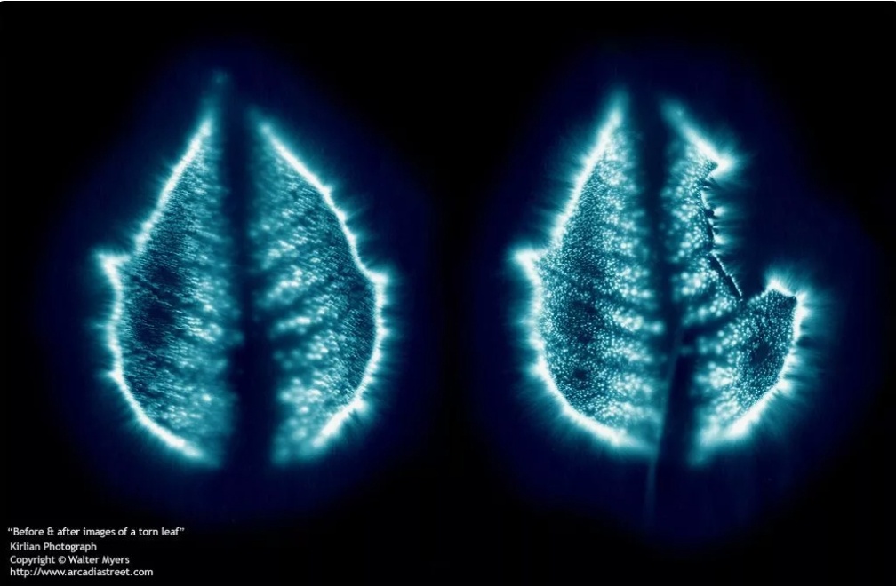 Известный эксперимент, часто цитируемый в эзотерической литературе, — это «фантомный лист». Если поместить лист растения в высокочастотное электромагнитное поле (например, в установку Кирлиан), на фотоплёнке проявится его свечение. Если затем отрезать часть листа и сфотографировать снова, иногда проявляется свечение полной, целой формы листа. Этот феномен интерпретируется как доказательство существования энергетического тела, которое сохраняется какое-то время после повреждения физического.