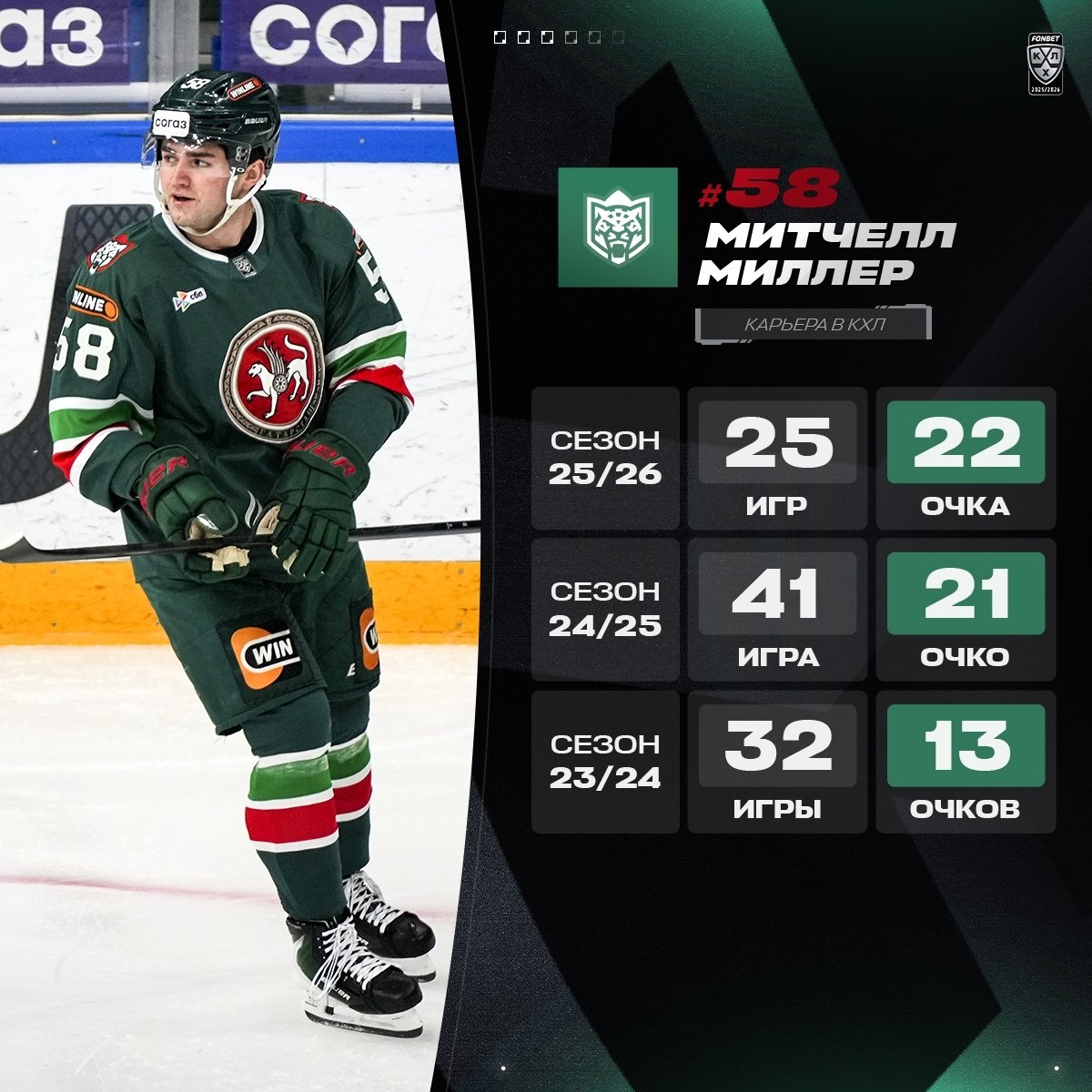 Митчелл Миллер проводит третий год в КХЛ, и текущий сезон — лучший из них. Наберет ли защитник 50 очков к концу регулярки? «Ак Барс» x «Динамо» Мн 17:00 мск KHL Prime