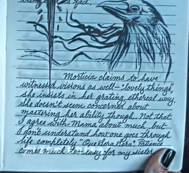 Офелия подшучивала над Мортишей. Она действительно сказала: «Мортиша утверждает, что тоже видела видения – „прекрасные вещи“, – настаивает она своим раздражающим, возвышенным тоном. Хотя, похоже, её не волнует овладение своими способностями… Не то чтобы я во многом соглашалась с мамой, но я не понимаю, как человек может прожить жизнь до конца, „Que Sera Sera“. Терпение дается моей сестре слишком легко(?)».