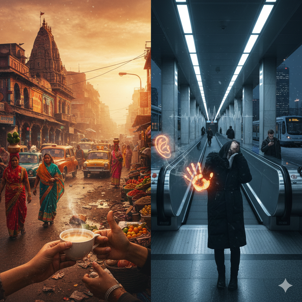 Первые дни в Москве стали для меня испытанием почище любой поездки в делийском такси. Если Индия била по чувствам физически — оглушала, давила, ошеломляла, — то возвращение ударило по психике, тихо и методично, как запрограммированный алгоритм. Это был культурный шок наоборот: шок от возвращения в цивилизацию, которая вдруг показалась мне самой неестественной средой обитания.